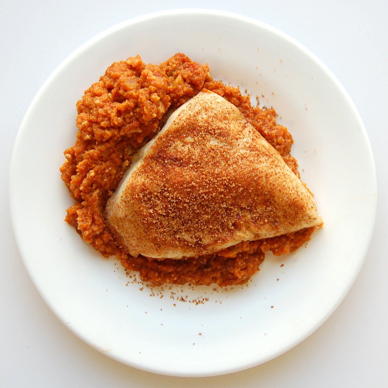 Fresh chicken breast is dusted with a mix of brown sugar, cumin, chili powder and nutmeg, then cooked in a pumpkin, chipotle puree. Ready to bake.